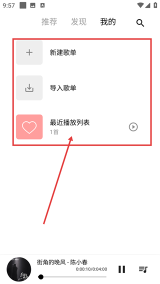 3、切换到【我的】页后点【最近播放列表】,就能查看近期听过的歌曲,快速找回想听的音乐啦。