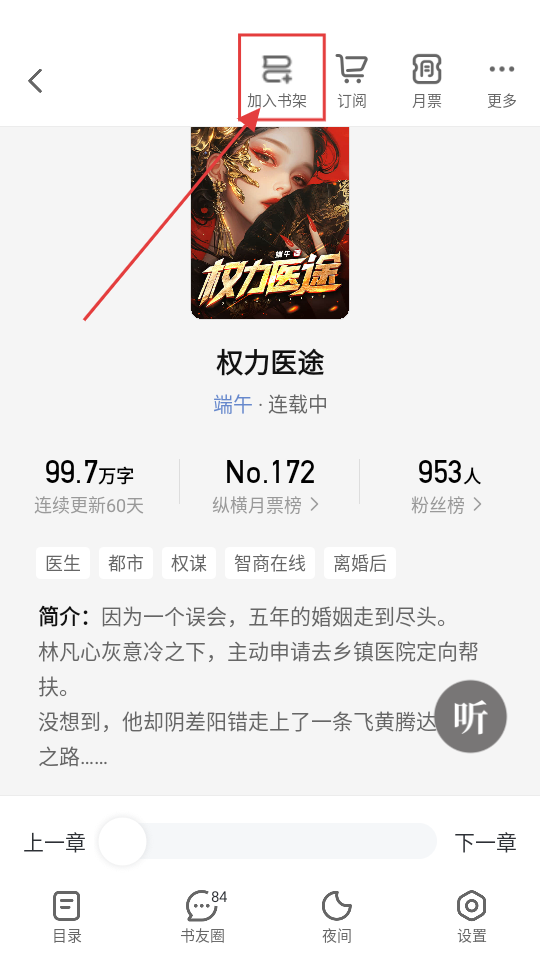 2、进入书籍详情页,若想把书籍加入书架方便后续阅读,点击【加入书架】,就能完成操作哦。