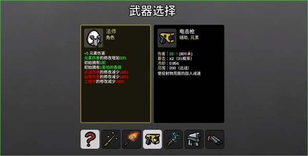 电击枪起手,因为初始武器里面只有这一个是纯元素伤害。