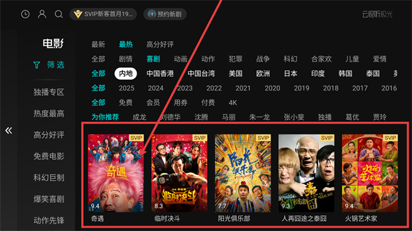 2、提供更多选项:应用程序提供多种观看选项,包括按类型以及时代等进行过滤,还可以通过多屏交互实现便捷操作。