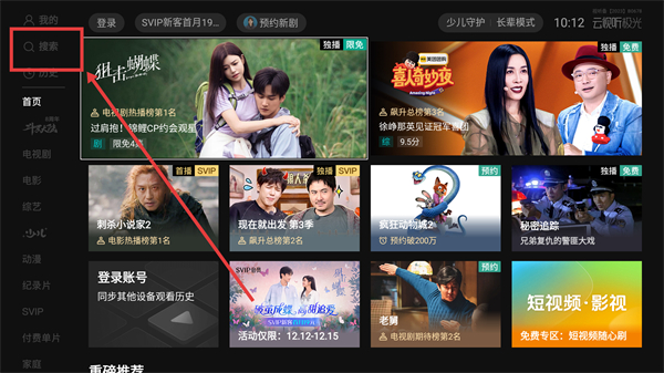 1、在应用首页点击左侧的【搜索】按钮,就能打开搜索界面,输入想找的影视内容关键词啦。