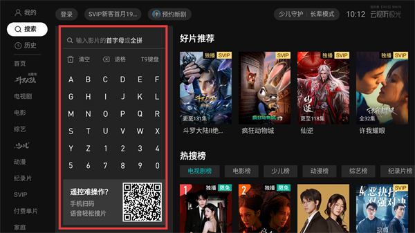 《云视听极光最新版》为影迷带来最新版本,很多全新的功能都是在这里上线,在原版的腾讯视频上面进行改动,加入很多符合电视用户的功能。效果惊艳,让您在电视机前享受终极体验,将显示选定的内容,您可以使用分类或搜索功能找到您感兴趣的视频,根据用户的观看历史和兴趣,智能推荐相关视频内容,操作起来更加适合遥控机体验,让喜欢看电视的用户能够放心在这里进行追剧体验。