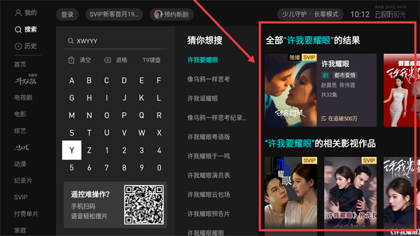 3、输入关键词后,右侧会显示相关结果,选择目标作品(比如【许我耀眼】)就能进入详情页啦。