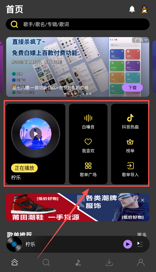 4、最后别忘了探索其他功能,在搜索页能找到助眠白噪音或热门抖音曲库,通过歌单广场发现更多灵感,打造个人音乐库真的很方便。