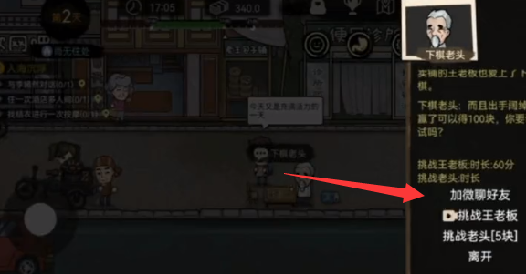 2、赢了老头以后再次点击对话会发现有添加好友的选项,成功添加以后寒暄几句。