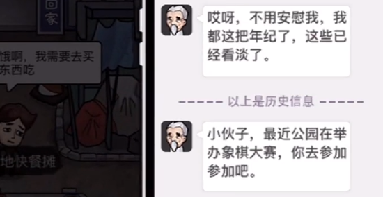 1、我们在路边偶遇下棋老头,然后我们和他来上一局并且获胜。