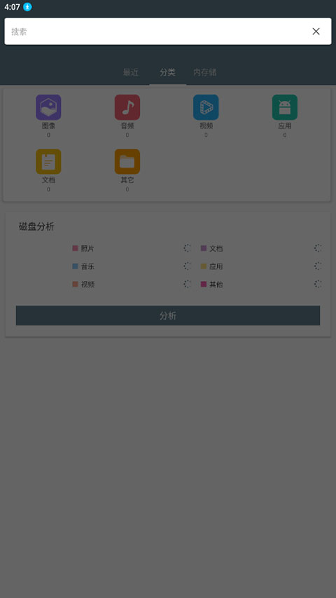 1、进入软件,可以看到分类里面有详细的图像、音频、视频等管理;
