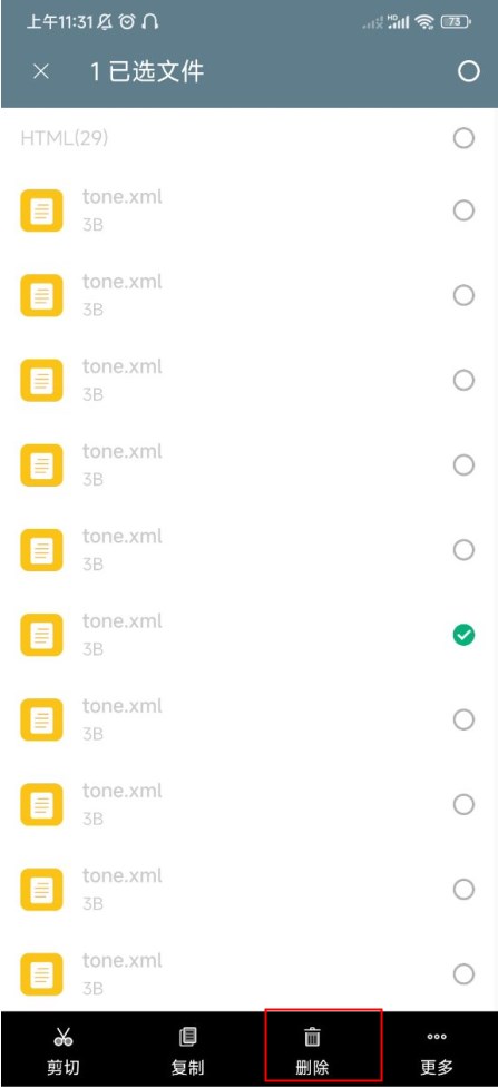 3、如果想要删除某一项文档,只需选中文档点击底部删除即可