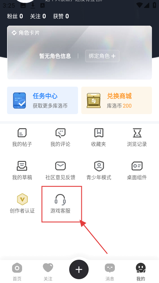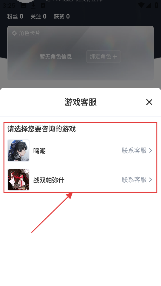2、进入个人页面后,点击【游戏客服】,可进入游戏客服选择页面哦。