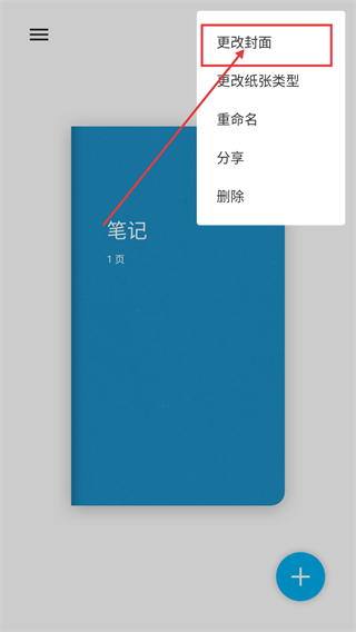 2、打开操作菜单后,找到【更改封面】选项并点击,就能进入封面设置界面调整笔记外观啦。