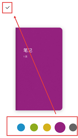 3、进入封面设置页后,可选择底部的颜色选项(比如紫色),选好后点左上角对勾就能应用新封面哦。