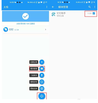 5、然后点击Xposed框架里面的钉钉,根据提示安装处理过的钉钉,下图即表示创建钉钉完成;