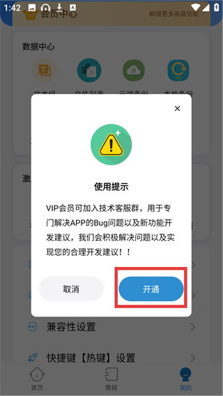 2、进入个人中心后点击【技术客服】选项,就能唤起使用提示弹窗,了解VIP会员相关服务哦。