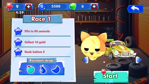 2、单人关卡挑战:您可以参加单人挑战赛和锦标赛,不同的赛道上挑战,玩家可以控制猫等小动物一起比赛并通过关卡。