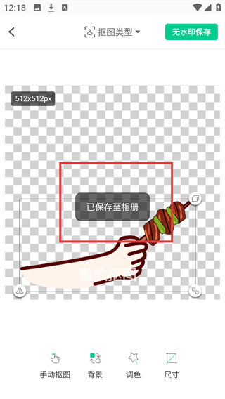 4、选择保存方式后,页面会提示【已保存至相册】,代表抠图后的图片已成功存储到设备相册啦。