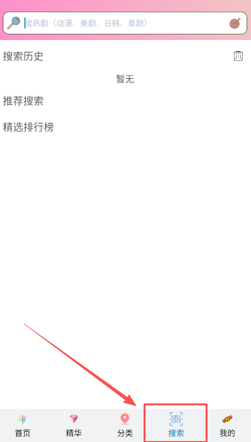 3、留意“搜索”页里的“操作面板”,那里有“动漫”、“美剧”等现成按钮。