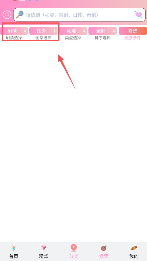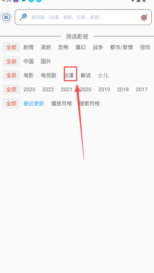 3、除了详细筛选,你也可以用快捷入口。搜索页上的“动漫”、“美剧”等按钮,是预设好的分类筛选,特别方便追特定区域剧集的用户。