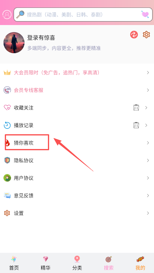 4、在“我的”页面登录后,系统能记住你的偏好,不仅在首页“猜你喜欢”里推荐更准,还能同步你的观看进度。