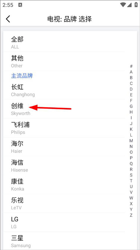 3、点击选择电视品牌,将遥控器添加至列表;