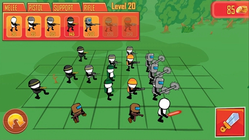 火柴人枪战模拟器玩家在攻击敌人时一定要注意不要控制角色的攻击,玩家可以使用各种火柴人士兵来安排你的部队。