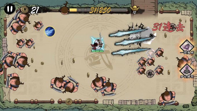 3、更多武术选择:获得的所有奖励都可以放在背包中,可以学习更多的武术技能,可以用来兑换更多的武器和物品。