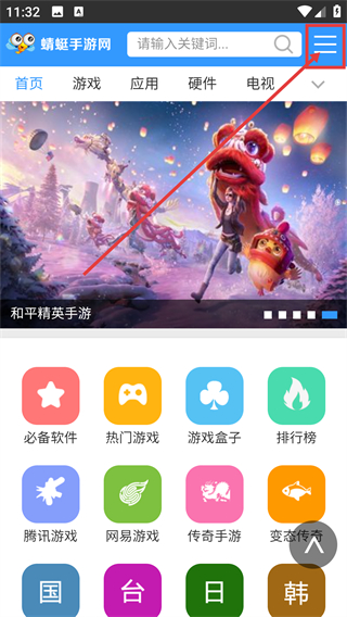 1、在蜻蜓手游网首页点右上角的菜单按钮,能展开分类页面,后续可按游戏类型筛选想找的内容啦。