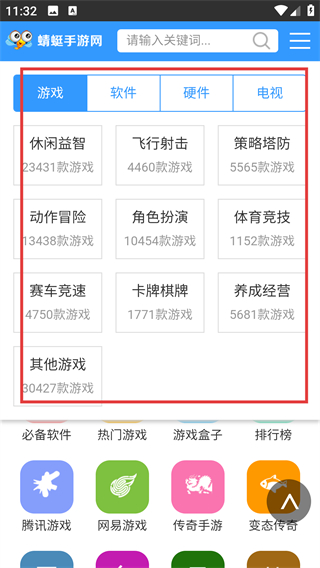 1、在app中点击右上角,在游戏、软件、硬件、电视四个大分类中,选择其个子的子分类