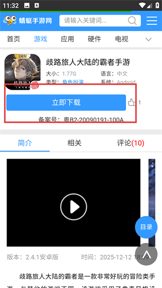 4、进入游戏详情页后点【立即下载】按钮,就能开始下载这款手游,后续可安装体验游戏哦。