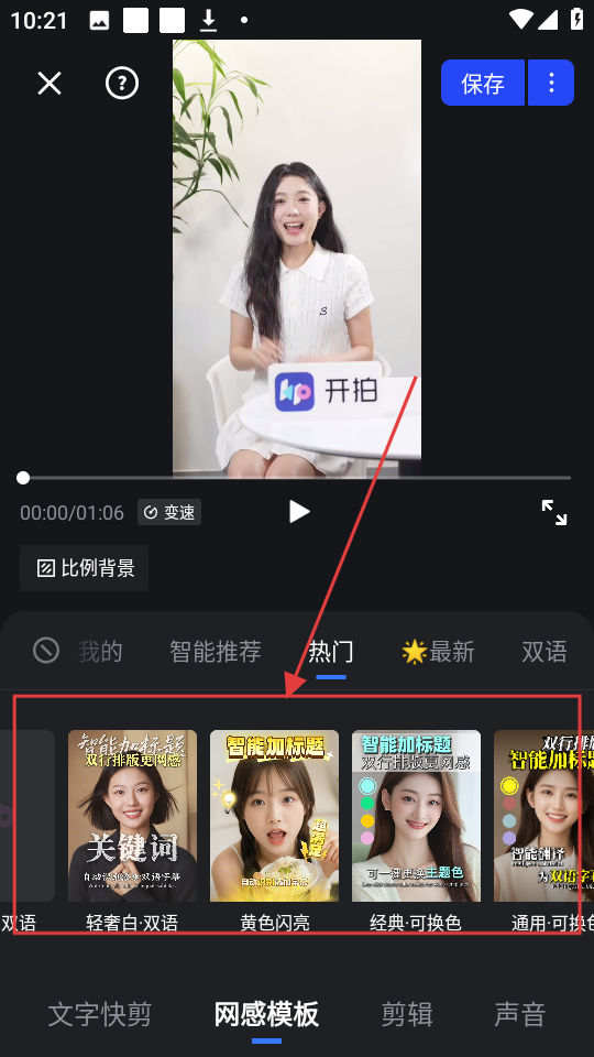 4、切换到【网感模板】界面,选择喜欢的模板,给视频添加网感效果啦。