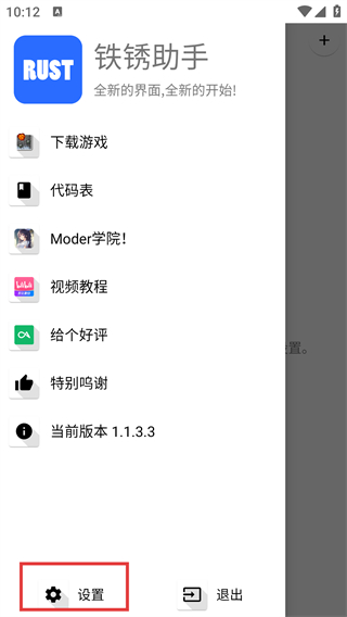 2、在【铁锈助手】功能列表页,点击底部红框标注的【设置】进入配置界面。