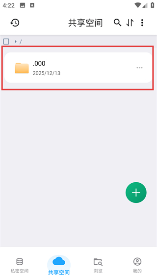 4、创建完成后回到共享空间页,就能看到刚新建的文件夹,后续可往里面添加文件来分类存储哦。