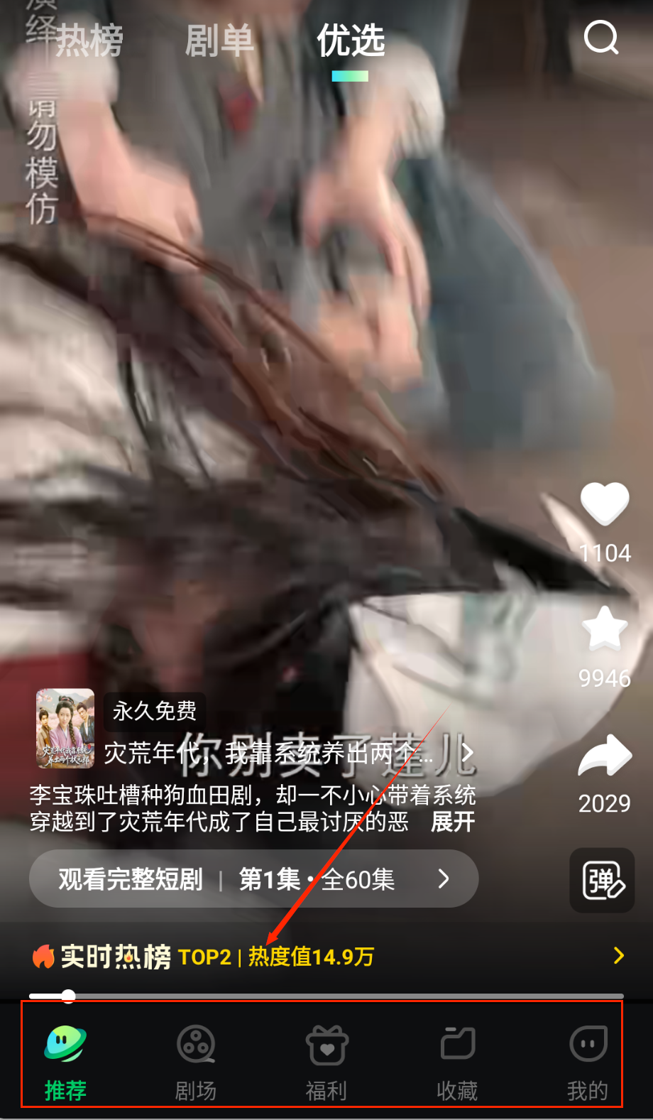 2、想追剧的话可以在剧场板块浏览,通过分类筛选或搜索找到心仪短剧,看到标注免费或热播标签的都可以直接观看。