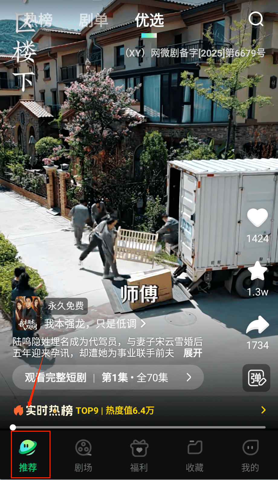 2、在首页的推荐板块浏览热门短剧,或者通过顶部的搜索框直接输入剧名或演员名字来查找特定想看的剧。