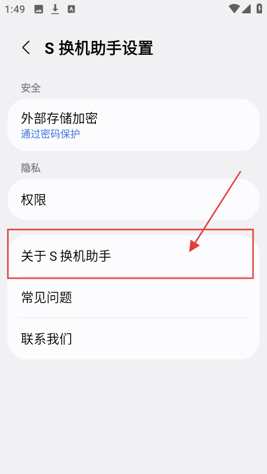 3、在【S换机助手设置】页面,找到【关于S换机助手】选项,点击它可以查看S换机助手的相关信息。