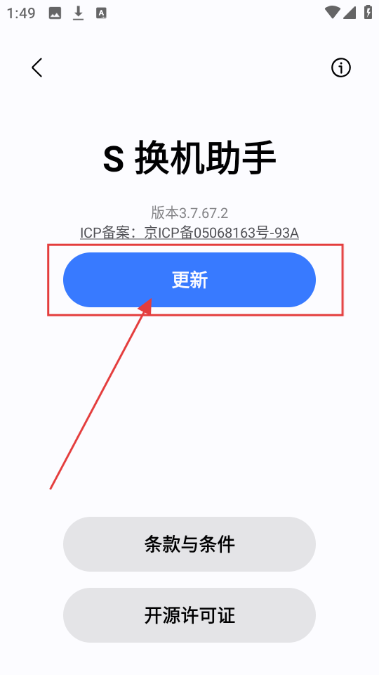 4、进入【关于S换机助手】页面后,能看到版本等信息,还有【更新】按钮,点击可更新S换机助手。