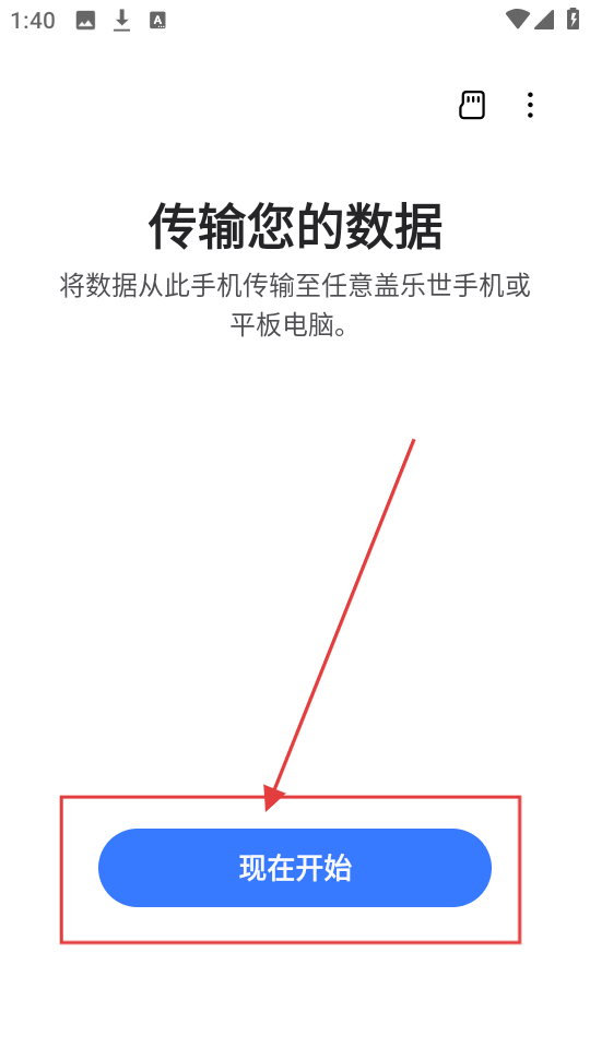 1、在数据传输界面,有【现在开始】按钮,点击它就能开启数据传输流程,把数据传至盖乐世设备啦。