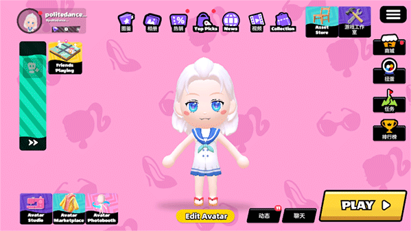 5、〖编辑形象〗→购买官方衣服,动作和玩家自制衣服,以及自定义更换衣服;