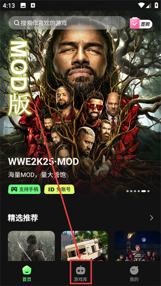 1、在首页点击底部的【游戏库】选项,就能进入游戏分类页面,浏览各类游戏资源啦。