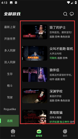 3、在分类栏选择【逃脱】分类,就能查看该类型下的游戏列表,找到想玩的逃脱类游戏啦。