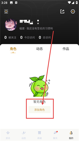 2、进入个人页面后,看到【暂无角色】提示时,点击【添加角色】按钮,就能进入角色添加流程哦。