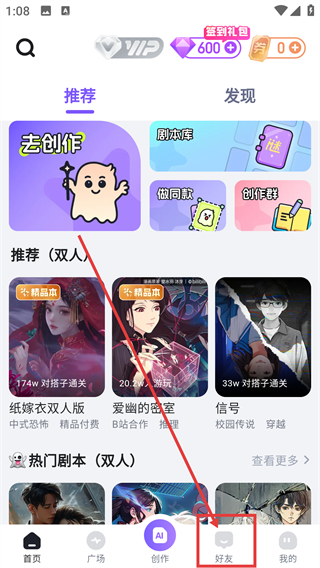 1、在首页点击底部的【好友】选项,就能进入好友相关页面,处理社交互动相关的操作啦。