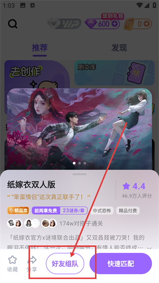 1、在推荐页选【纸嫁衣双人版】这类双人剧本,点它就能进入剧本详情页,准备开启合作游玩啦。