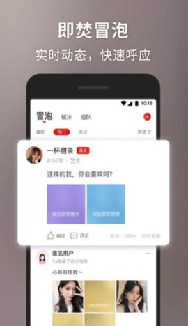 2、匿名系统体验:可以选择匿名或实名发布个人动态,用户可以参与并结交更多志同道合的人,会提醒用户查看交互式消息内容。