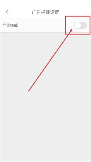 4、进入【广告拦截设置】页后,点【广告拦截】的开关按钮,就能开启或关闭广告拦截功能哦。