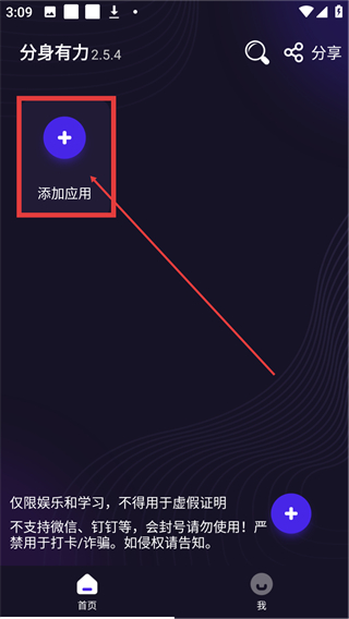 1、在【分身有力】首页点【添加应用】按钮,就能进入克隆APP的选择页面啦。