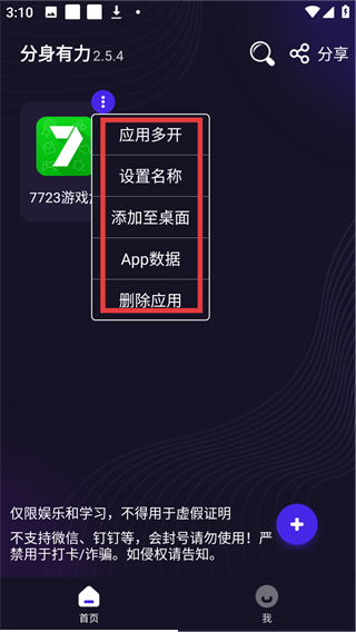 分身有力vip永久版让用户不需要担心自己的工作帐户或生活帐户的影响,可以拆分游戏或微信等一些应用程序。