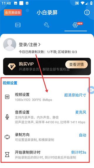 《小白录屏免费版》这个版本主打就是免费,用户可以免费在这里进行使用,用户可以免费使用录屏功能进行录屏,把自己想要的页面进行录屏处理,体验起来很便利,使用起来非常方便和强大,提供了最佳的屏幕录制体验,可以更好地录制各种高清视频,操作更方便以及更人性化,提供服务供您选择,浮动窗口录制过程更方便,无限制录制,而高级视频编辑功能可以帮助用户编辑和剪切录制的视频,可以录制手机内部声音,基于保存相册等技术,真正为用户提供高效、人性化的屏幕录制工具,采用极简而不简单的设计风格,拥有丰富的核心技术,满足了广大用户的个性化需求。