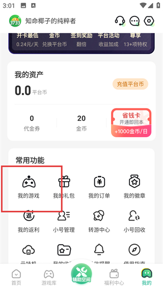 3、在“我的”页点击常用功能里的【我的游戏】选项,就能进入我的游戏页面,查看收藏和游玩的游戏啦。