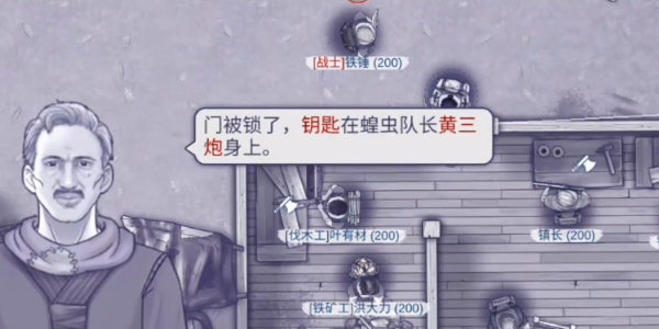 3、击败蝗虫士兵后来到底部的小屋前和镇长对话获得火铳的线索。