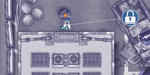 3、来到军事营地的检修车间前,使用从迷雾商人手上获得的钥匙打开车间大门进入检修车间。